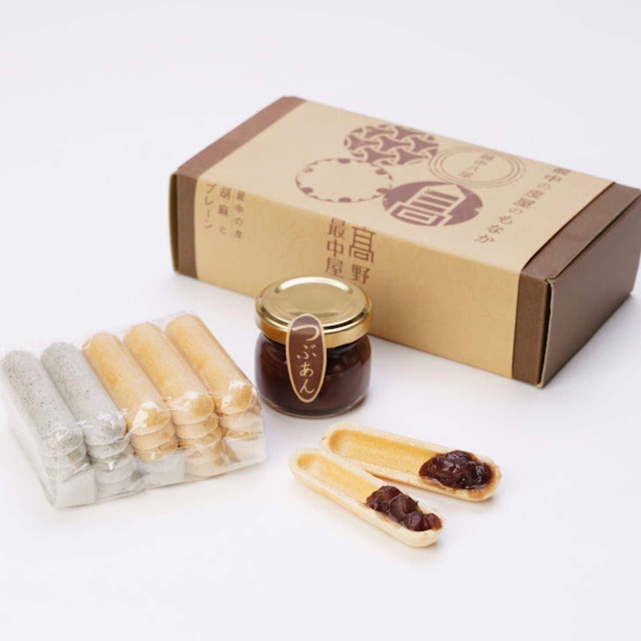 最中の皮をもっと楽しんでもらうため、あんこを添えてセットになりました。